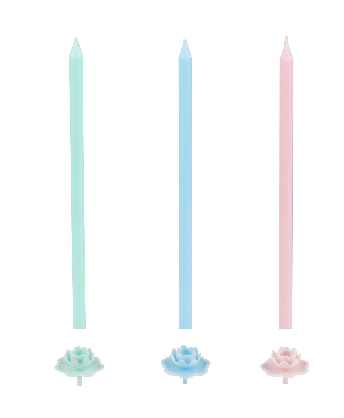 Mit den extra langen Kerzen wird die Festtagstorte zum absoluten Hingucker. Auch Cupcakes und moderne kleine, hohe Kuchen lassen sich damit im Handumdrehen verschönern. Der Kerzenhalter inkl. Wachsauffangschale verhindert, dass Wachs auf den Kuchen tropft.