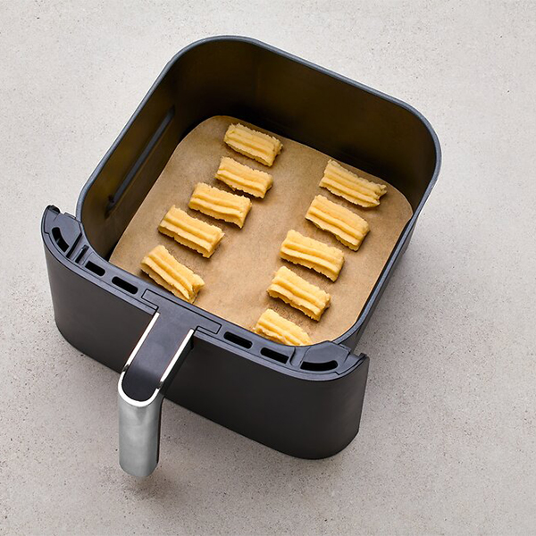 Für die Zubereitung wird nur ein Ei, Butter und Wasser benötigt. Der Teig vom Churro Bites Rezept ist schnell angerührt, lässt sich einfach aufs Backpapier spritzen und wird anschließend im Airfryer ohne klassisches Frittieren gebacken – ganz ohne Ölbad, ohne Geruch und ohne Aufwand bei der Entsorgung.