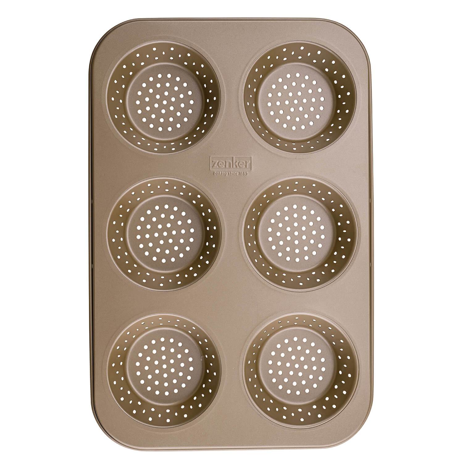 Das perforierte 6er Brötchenblech von Zenker ist ideal zum Backen von selbstgemachten frischen Brötchen. Das Blech ist aus Stahlblech und mit einer Antihaftbeschichtung versehen, die das Entformen mühelos macht. Nach der Verwendung lässt sich das Blech schnell und einfach per Handwäsche reinigen. Außerdem ist das Brötchenblech hitzebeständig bis +230°C und hat 5 Jahre Garantie.