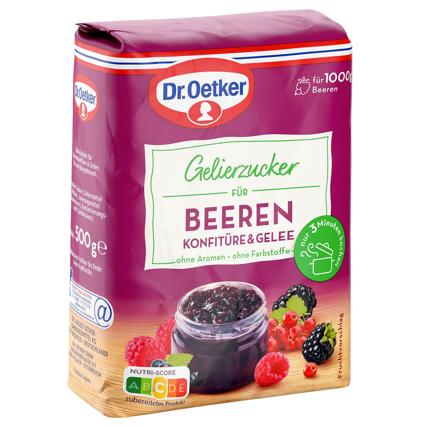 Mit einer Packung kannst du aus 1000g frischen oder auch tiefgekühlten Beeren (sortenrein oder gemischt) bzw. aus 750ml Saft ganz einfach und sicher Konfitüren und Gelees selber machen. Nur 3 Minuten kochen.