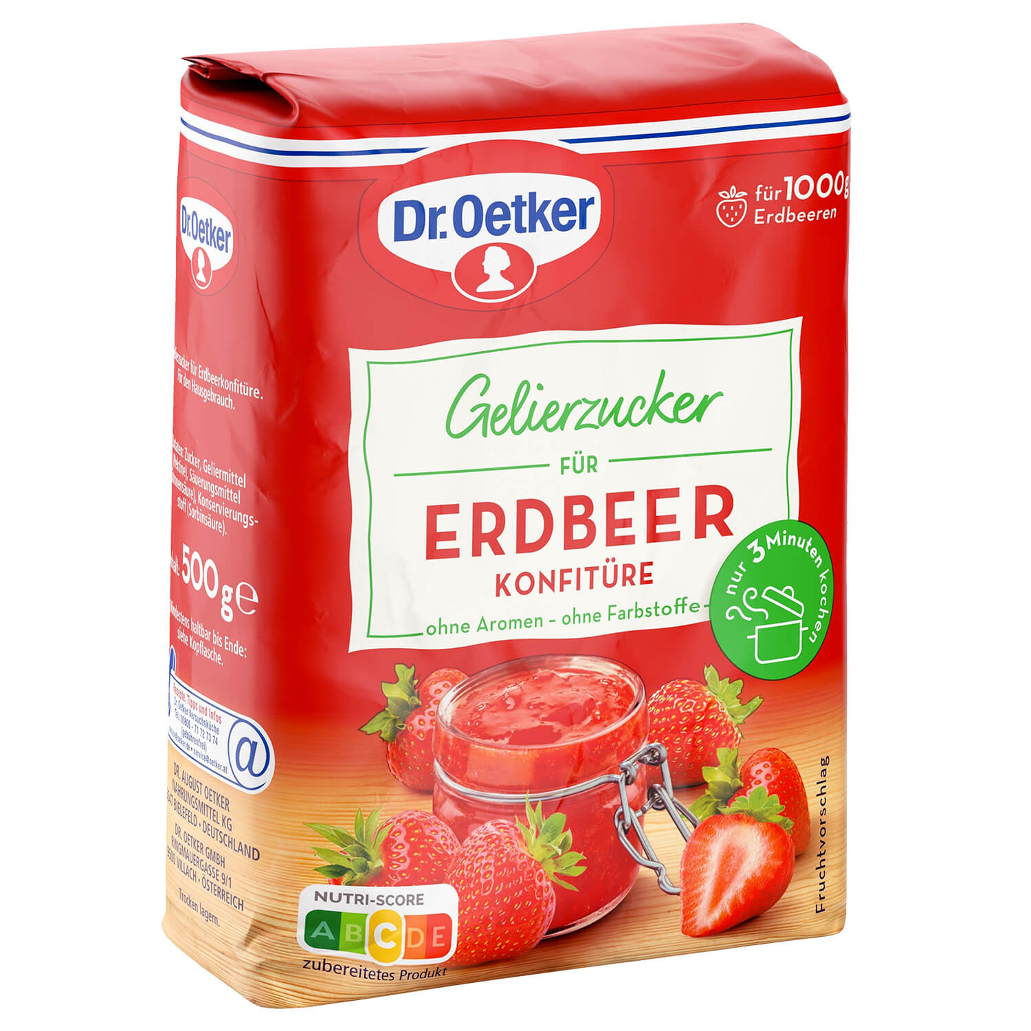 Mit einer Packung können Sie aus 1000g frischen oder auch tiefgekühlten Erdbeeren ganz einfach und sicher Erdbeer Konfitüre selber machen. So lecker wie noch nie. Nur 3 Minuten kochen.