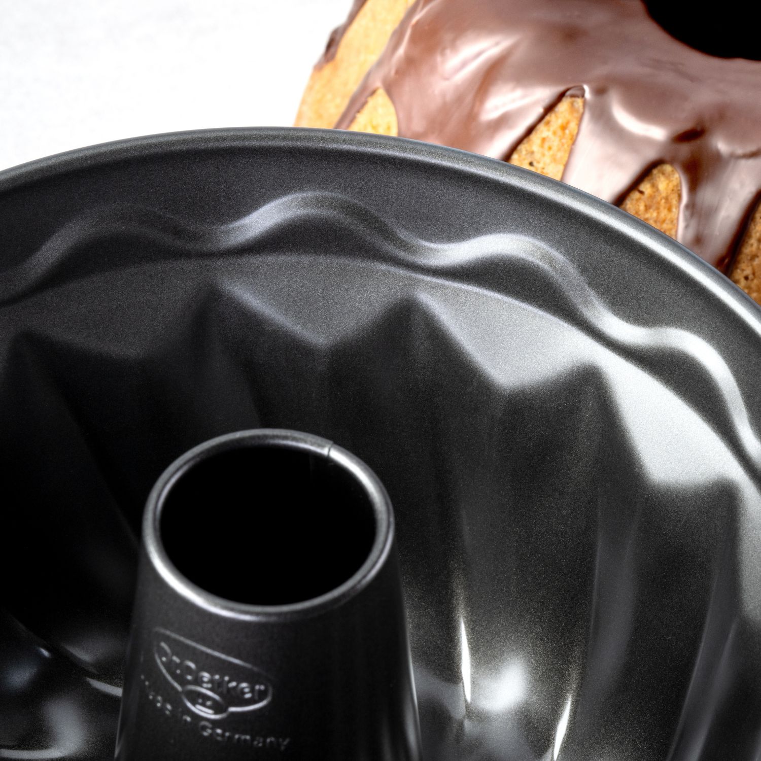 Dank der glatten Oberfläche lässt sich die Gugelhupfform leicht mit der Hand reinigen.