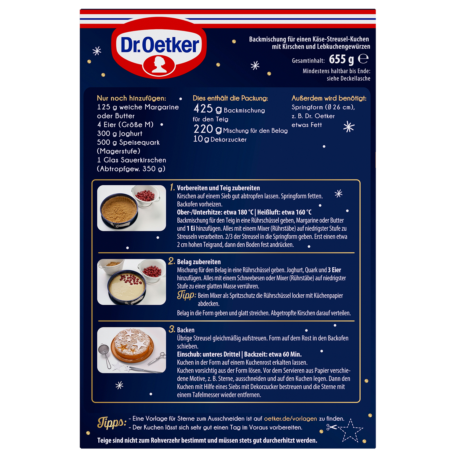 Verwöhne deine Liebsten in der Adventszeit mit dem köstlichen „The Taste of Christmas” Käse-Kirsch-Streuselkuchen von Dr. Oetker. Die Kombination aus cremiger Käsemasse, fruchtigen Kirschen und Lebkuchengewürz macht diesen Weihnachtskuchen zu etwas ganz Besonderem.