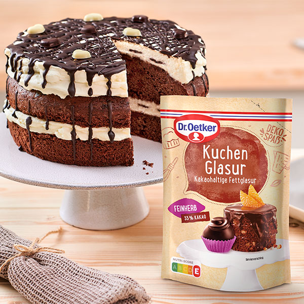 Die Dr. Oetker Kuchenglasur Feinherb ist ideal, um Gebäck eine edle Note zu verleihen. Die feinherbe Glasur bietet intensiven Schokoladengeschmack ohne zu viel Süße und eignet sich wunderbar für kreative Dekorationen.