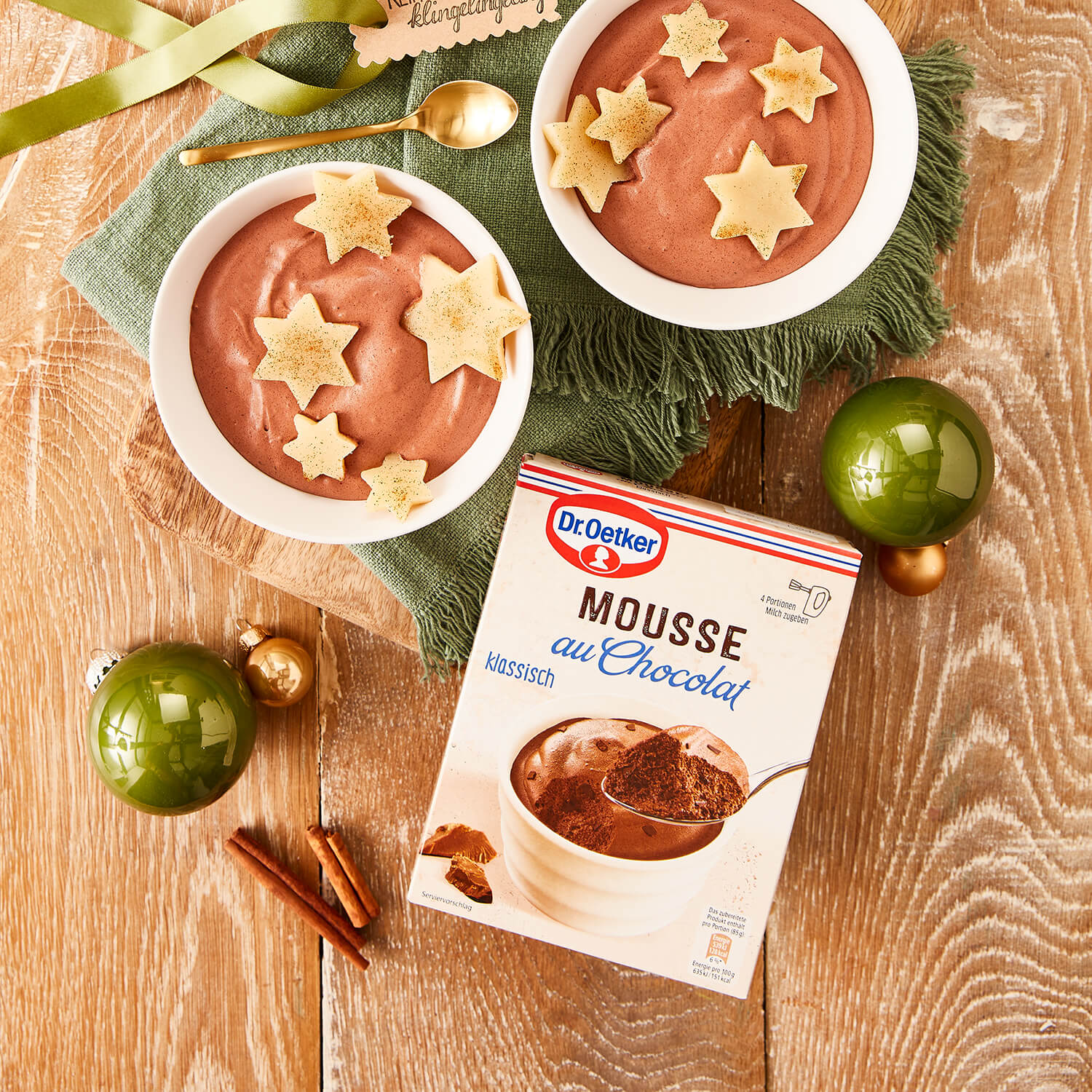 Die Zubereitung der Mousse au Chocolat ist mit Dr. Oetker einfach und gelingsicher. Du brauchst lediglich etwas Geduld, während die angerührte Dessertcreme kühl gestellt wird. Dadurch erhält die Mousse au Chocolat ihre einzigartige Lockerheit, und auch der Schokoladengeschmack kann so sein intensives Aroma entfalten. Mit unserer Mousse au Chocolat kannst du deine Familie und Gäste so richtig verwöhnen.