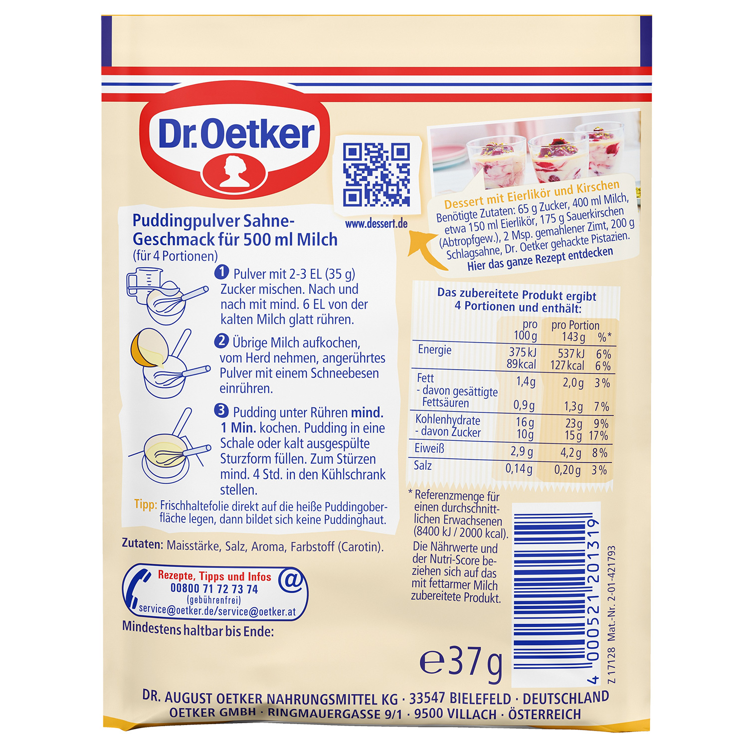 Sahnig mild schmeckt der Dr. Oetker Original Pudding Sahne-Geschmack. Er wird mit 500 ml Milch und 40 g Zucker gekocht. Besonders lecker schmeckt dazu eine Dr. Oetker Dessert-Soße Schokolade. Dr. Oetker Original Puddinge sind die Klassiker unter den Dr. Oetker Puddingen und stehen seit 1894 für Erfahrung, Qualität und Genuss. Genießen auch Sie das Gefühl von Geborgenheit, Liebe und besten Puddinggeschmack mit Dr. Oetker Original Pudding Sahne-Geschmack.