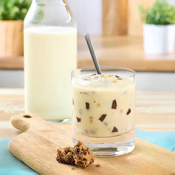 Die Zubereitung der Paradies Creme ist einfach: Cremepulver in ein großes Glas oder einen Kaffeebecher füllen, 125 ml kalte Milch hinzufügen und 1 Minute mit einem Löffel verrühren, fertig ist die Portion Dessert Creme mit Cookies & Cream-Geschmack.