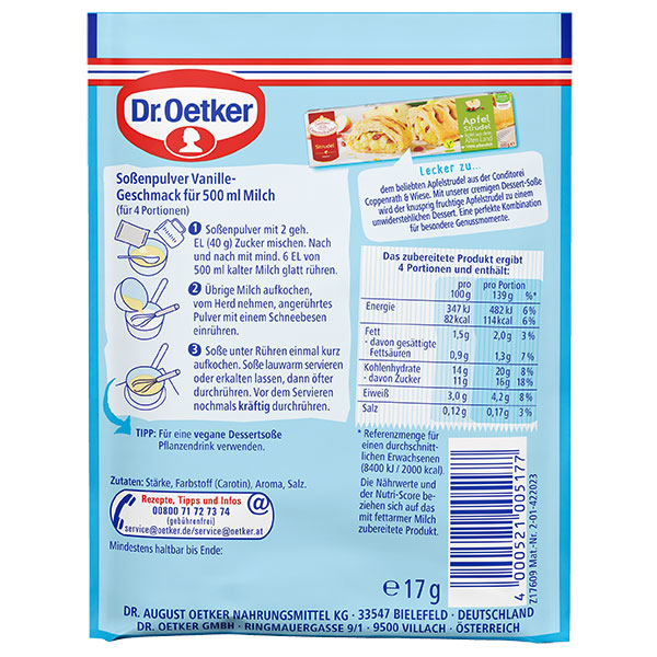 Dr. Oetker Dessert-Soße Vanille-Geschmack zum Kochen ein wahrer Genuss.
