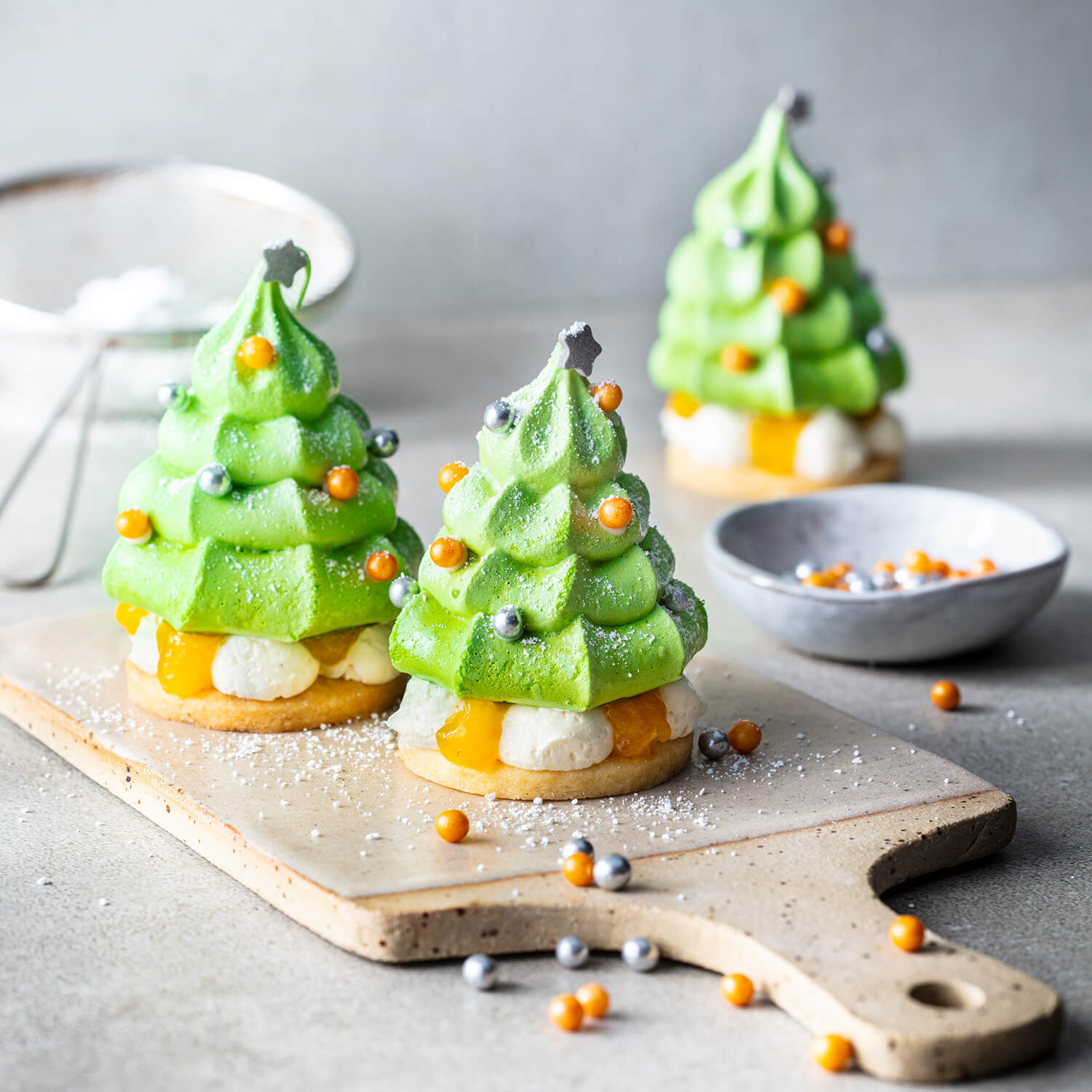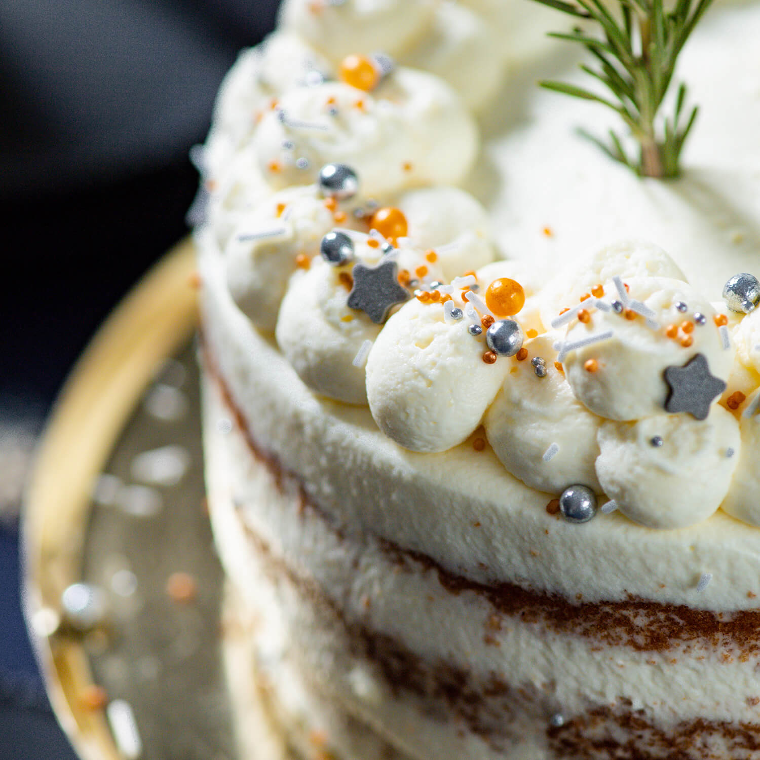 Hinweis: Glasuren oder Zuckerguss kurz vor dem Antrocknen bestreuen. Sahne oder Cremes erst kurz vor dem Servieren verzieren.